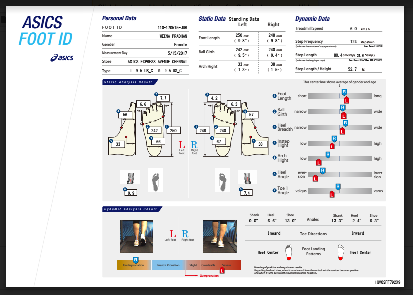 Years ago I used to get the foot scan done at Adidas, for that was the only option available at that time. It was pretty basic. In recent times, however Running Lab has come to Chennai and the Asics flagship stores are equipped with gait analysis system. Of the two, I prefer the Asics stores. Their staff is better trained to do the gait analysis and their system is more advanced and detailed. While the general term is gait analysis, Asics calls it the FOOT ID. I have reproduced here their official description of the process.