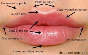 Our lips are enclosed within the vermilion border. Now what is that ? It is the line where our lips meet the surrounding skin of the mouth. The reddish or pinkish area within that border is called the vermilion zone. Of-course, not all lips are red or pink. Genes and race largely influence the hue of our lips. External factors also add to it and we will come to that soon.