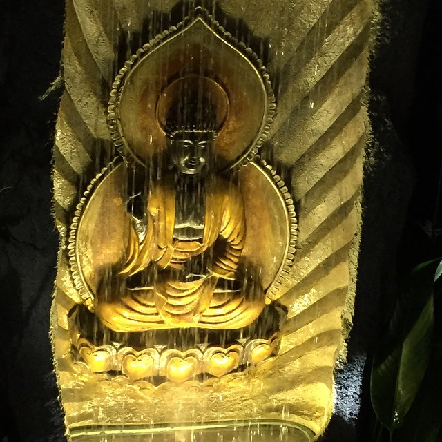 I was at a friend’s place for a party last night and was drawn to this figure of the Buddha in her living room even amidst boisterous conversations and a lot of gaiety. The lighting helped , or rather the meagre lighting helped , making it all at once dramatic and striking. I stood there transfixed for sometime , completely oblivious to the chatter of the party , my mind captured by the beauty of the Buddha , the subtle light of the lamps lending lambency and the almost silent trickle of water in the base that glistened and twinkled. The yellow marigolds only seemed to add a sense of worship to that corner of the room. I had to capture the visual beauty. Those few minutes were meditative.