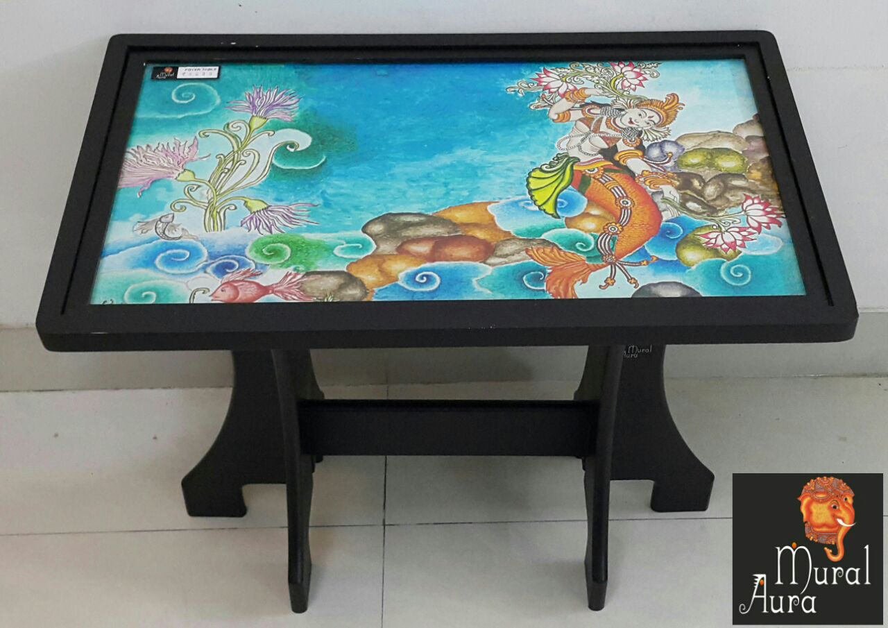 Look at these beautiful foyer tables from Mural Aura with Kerala mural art imprinted and encased , medium-sized so as to be movable. People today like to change the look of their rooms often and rearrange furniture to bring in freshness and variety.